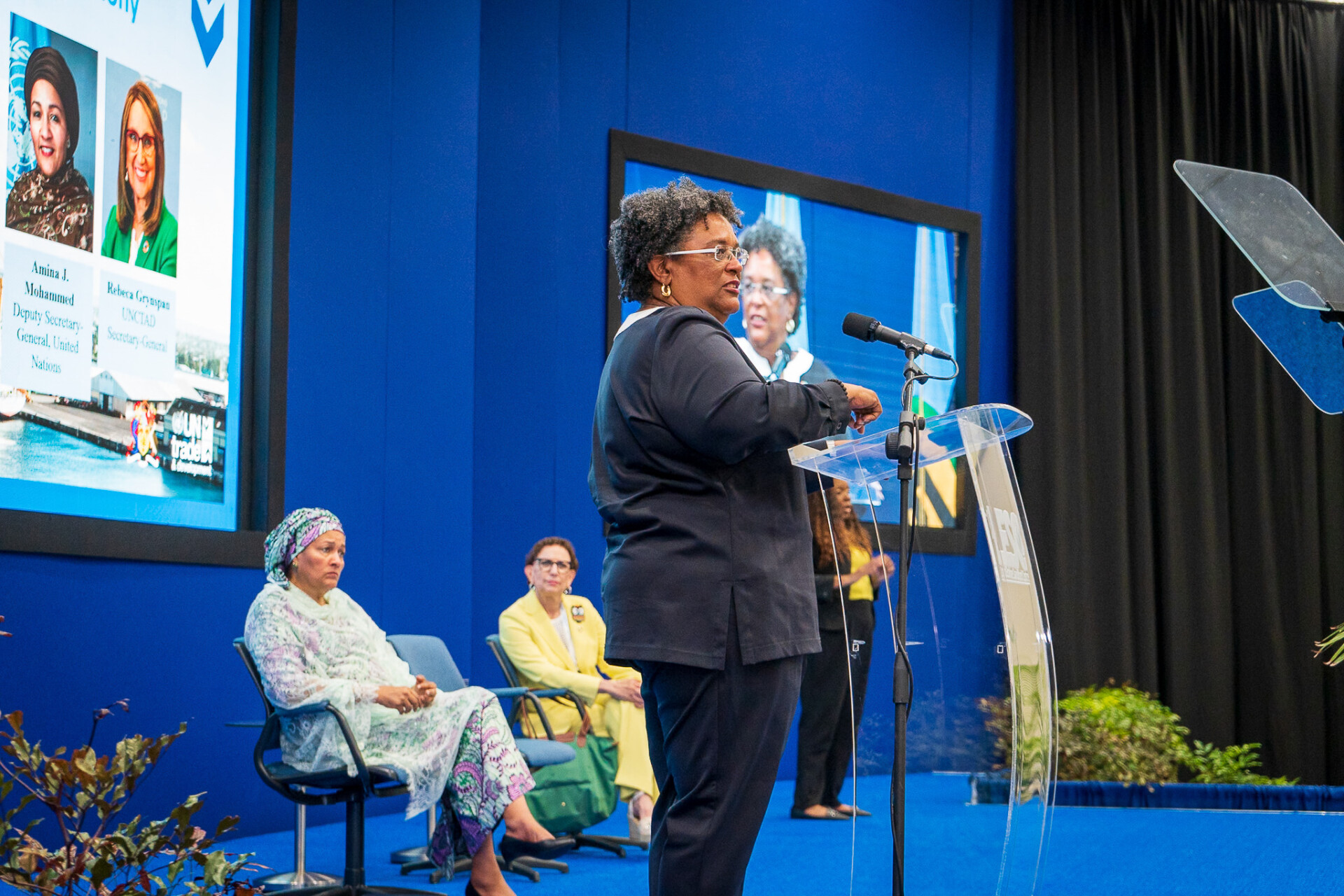 | ImageDescription | Barbados Prime Minister Mia Mottley delivers her opening address to the audience at the Opening Session of the UNCTAD Global Supply Chain Forum 2024. |